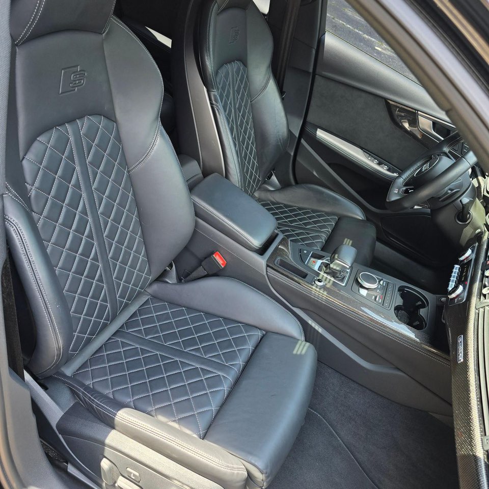 With only 15,600 miles, this S4 is in excellent condition, offering a near-new driving experience. The exterior boasts a sleek Mythos Black Metallic finish complemented by black alloy wheels, aggressive front grille, and LED headlights, giving it a bold, modern presence. Inside, the cabin features premium black leather upholstery, tri-zone climate control, Audi Virtual Cockpit, and Bang & Olufsen sound system for immersive comfort and entertainment.